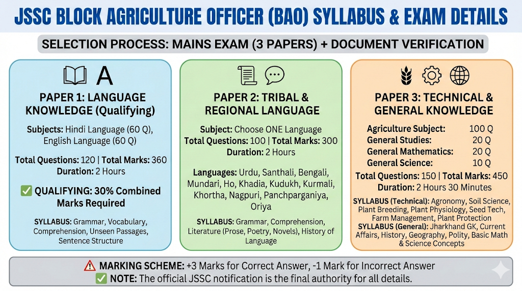 JSSC Block Agriculture Officer Syllabus and Exam Details
